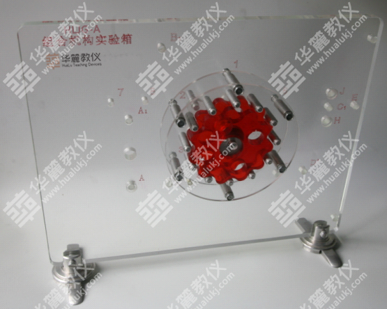 本演示箱對應《機械原理》教材,能夠組裝演示的平面機構有平面連桿機構14種、齒輪機構7種、定軸齒輪機構2種、2K-H周轉輪系1種、擺線針輪機構1種、棘輪機構4種、槽輪機構2種、不完全齒輪機構1種,共32種。